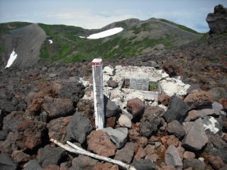 | 10時10分:山頂に到着。どういう訳か三角点は少し離れたところにあった。 | |||