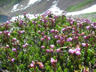 | 赤いエゾノツガザクラの群落があちこちに咲いている。チシマフウロも良く目につく。 | |||