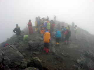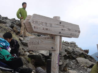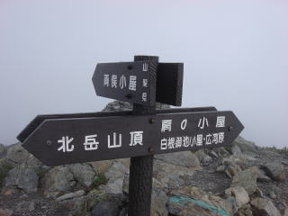 6時25分:北岳山頂に到着。何も見えない山頂は、既に大勢で人で賑わっていた。さすがに人気の山である。