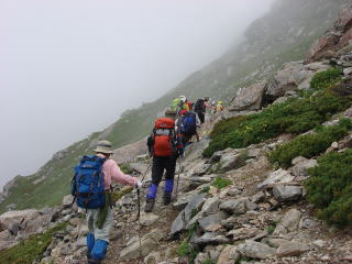本来は梅雨明け10日の一番天気のいい時期に登るべく設定されたのだが、今年も例年通りの異常気象で