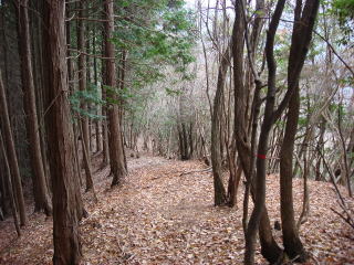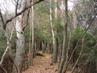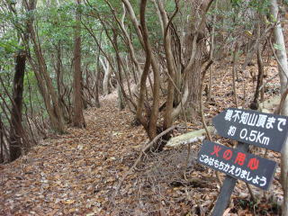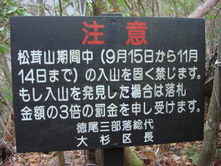 | 歩きやすい尾根道が続くが、松茸山期間中に入山すると莫大な罰金を取り立てられるので要注意である。 | |