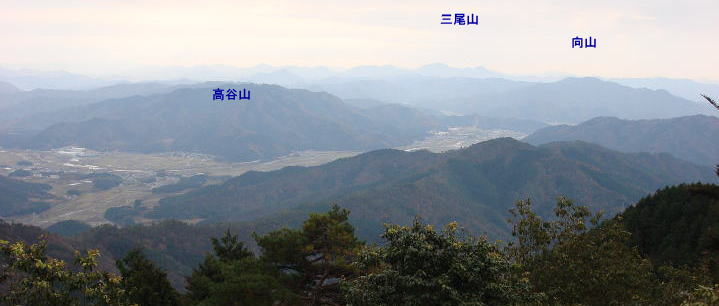 | 南側に展望が開け、向山や三尾山など丹波の山並みが見渡せたが、妙高山が分からなかった。 | |