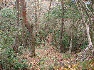 | 落ち葉でフワフワの歩きやすい道が続くが、時々急登になる。 | |