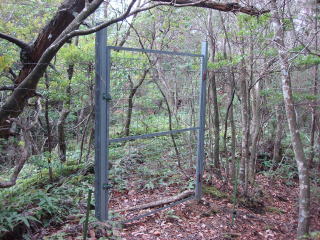 | 獣除けフェンスが現れ、扉があったので入っていく。 ここからの尾根は踏み跡のない笹薮で、左手に踏み跡が微かにあるルートがあったのでここを降りていく。 少し降りると駐車場裏に下山でき、フェンスの扉を開けて駐車場に帰着。到着時間ははジャスト1時だった。 |
