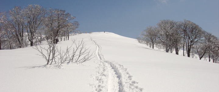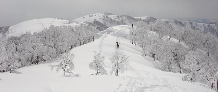 広大な雪原の尾根が続く雪の氷ノ山は、何度歩いても素晴らしい。