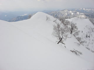 標高1200mのリフト最上部から急坂の樹林帯を過ぎると、明るく気持ちのいいヤセ尾根。