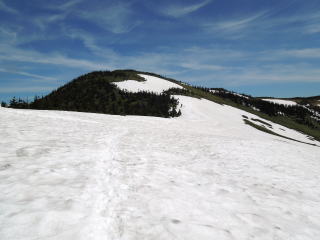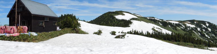 登り詰めると駒の小屋で、そこから山頂に向かって右手に歩いていく。