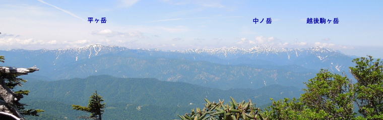 巻機山は平ヶ岳の、八海山は中ノ岳の後に隠れて見えないようだ。