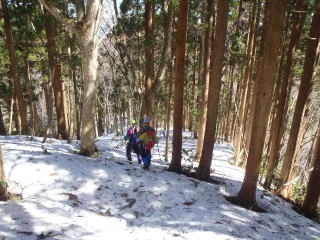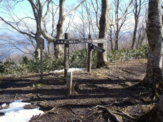 | 山頂から西毛無山を見ると、雪は十分残っているのでそちらへ回ることにした。12時:出発。 | |