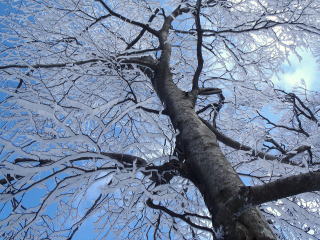 | 紺碧の空に真っ白な樹氷が輝いている。 | |