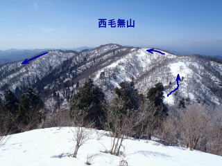 | 白馬山1060m−毛無山1218m−西毛無山1210m |