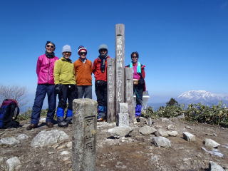 | 11時10分:毛無山山頂に到着。真っ青な空の下、風もない穏やかな山頂で大山を見ながら昼食休憩。 | |