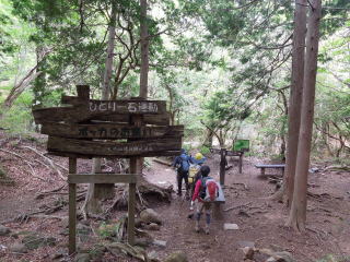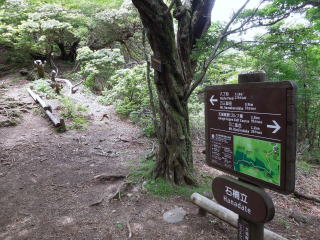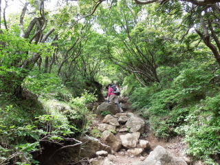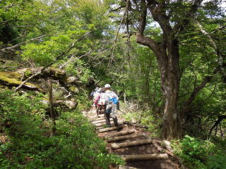| 12時15分:下山開始。すぐに八丁池や天城峠への縦走路との分岐になり、そこを過ぎると急坂を下って行く。 | |