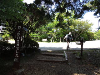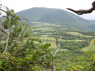 | 木の隙間からはゴルフコースと遠笠山1197mも見えた。小休止して出発。 | |