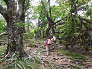 | 石楠立からは万三郎岳への登りになり、ブナの大木が多くなる。 | |