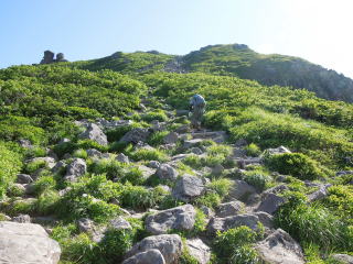| ゴツゴツしたガレ道を登っていく。 | |||