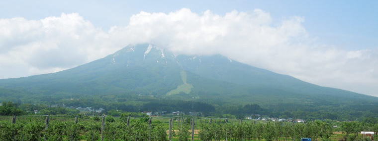 | 下山後、岩木山が見渡せるところを通ってもらったが、残念ながら山頂付近は雲に隠されていた。 | |||
