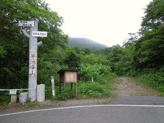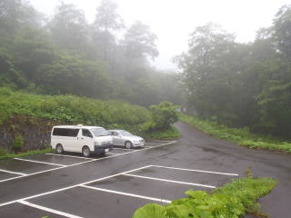 | 朝4時前に道の駅紫波を出発して約1時間、早池峰山河原の坊駐車場前を通って、小田越登山口登山口 を過ぎたところにある5台ほど駐車できる路肩に車をデポする。 小田越にデポしたのは、天気の崩れが早まって下山時に増水で渡渉できなくなってしまうことを考え、河原 の坊から登って小田越に下山することにしたもの。 |