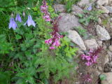 | 庭園にはミヤマシオガマ、ミヤマオダマキなどいろんな花が咲き競っている。 | |||
