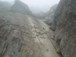 | 8合目付近の鉄ハシゴは直角ではないので、写真よりも高度感はない。 | |||