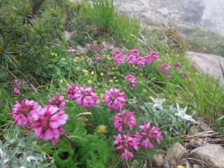 | 岩の間にはハヤチネウスユキソウやミヤマオダマキなどいろんな花が咲いていて楽しい。 | |||