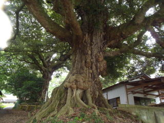 | 10分ほど歩くと筑波山神社の大鳥居で、鳥居をくぐってから大木が目を引く道を登っていく。 | |