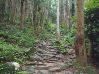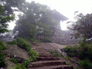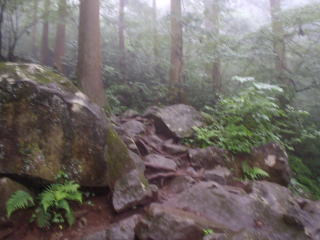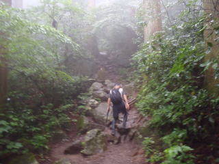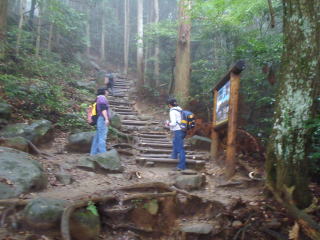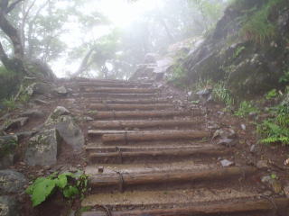 | 小雨がぱらつく蒸し暑い中を登りはじめると、すぐに汗が噴き出してきた。 | |
