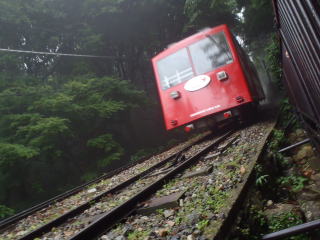 | 石が雨に濡れて滑りやすいので、下山はケーブルカーを利用することにした。 | |