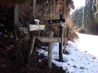 | 朝7時半に出発しコンビニ弁当を仕入れ地道を 通って行ったが、9時20分には後山キャンプ場 手前1km地点に到着。 高度計での標高は約600mだ。 ここから路上に残雪があるので路肩に駐車し、 9時45分に登り始めた。 10時に登山口に到着。先着車が1台ある。 ここまでは順調だった。 |