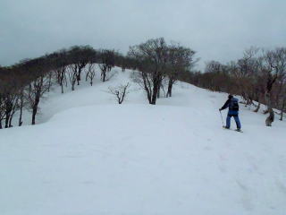 振り返ると、駒ノ尾山から後山への山並みが大きく横たわっていた。