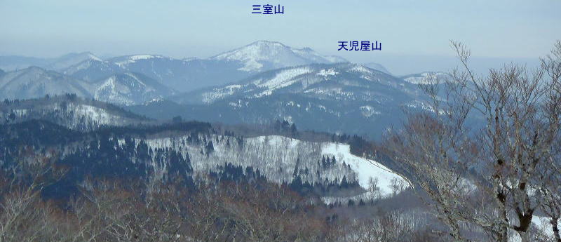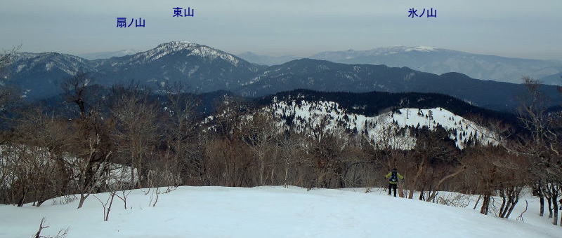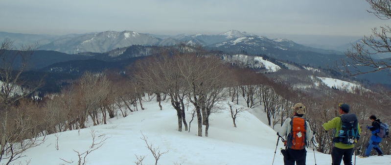 高度が上がったところで振り返ると、北東方向に氷ノ山や東山が綺麗に見渡せる。