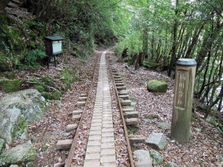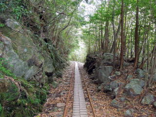 | 8時40分:線路跡の大株歩道入口に下山。ここからは線路跡を歩いて行く。 | |