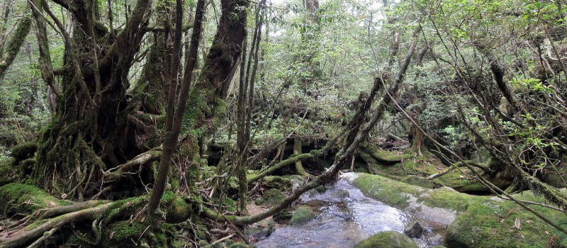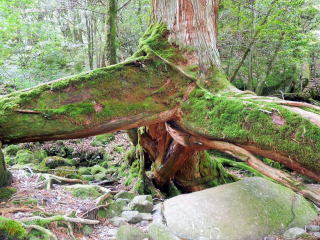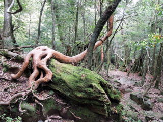 | 太鼓岩を降りるといよいよ白谷雲水峡。有名・無名の巨木が次々と現れる。 | |