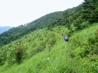 | 360度開けた尾根道を、何回かアップダウンを繰り返しながら歩いて行く。 | |||