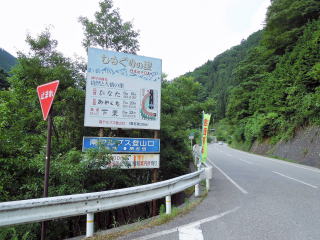 中央自動車道飯田山本インターから、県道1号、国道152号を通って遠山川沿いの林道に入り、約19km走って