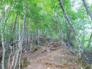 植林地から落葉樹林に変わり、しばらく急登がつづく。
