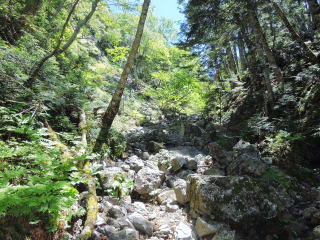入口から易老渡まで約19kmある林道は、15km位まではきれいな舗装道だが、頭より大きい位の石が時々