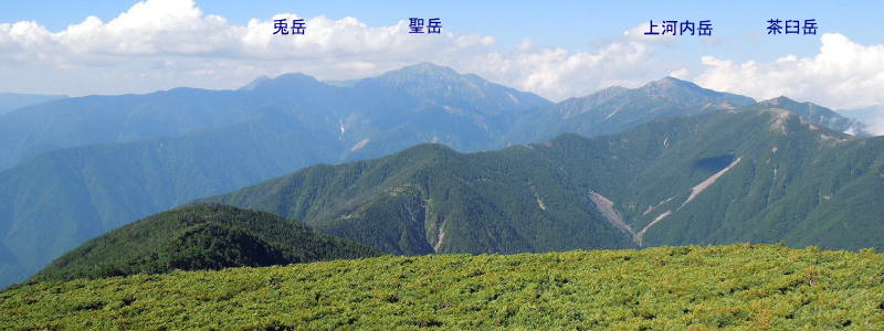 そして、北側には茶臼岳から聖岳への稜線が綺麗に見渡せた。