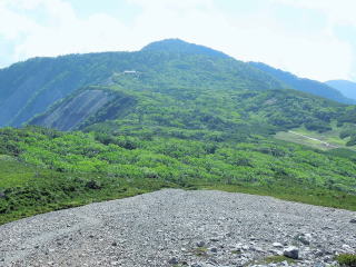 しばらく平坦な尾根道がつづくが、次第に傾斜が増し、ガレた歩きにくい道を1時間ほど登っていく。