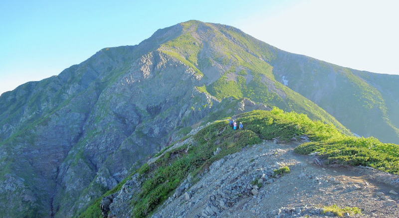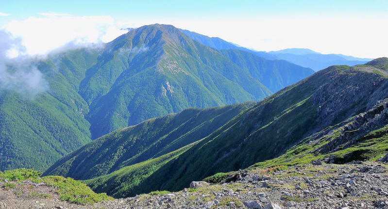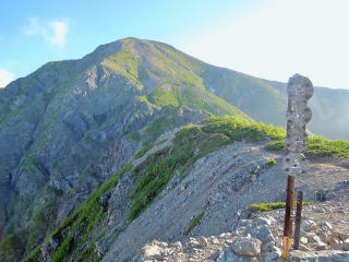 | すぐ北側には赤石岳が大きく迫っている。 | |||