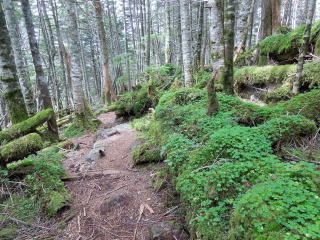 | 標高2000m辺りは、「苔平」の名のとおり苔生していた。 | |||