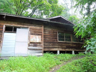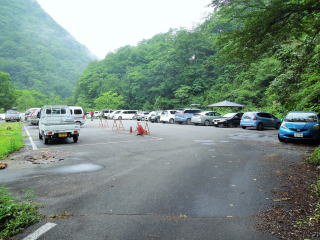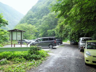 | 西沢渡からは森林鉄道跡の道を歩いて、14時20分、便ヶ島に下山。いつもながら、平坦地の歩きが一番 疲れる。便ヶ島は森林公園として整備され、広い駐車場や山小屋もあった。 |