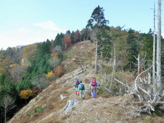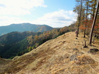 | ススキが刈られた作業道を歩いていき、途中で尾根に取り付く。 | |