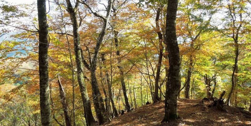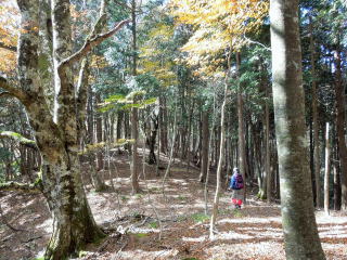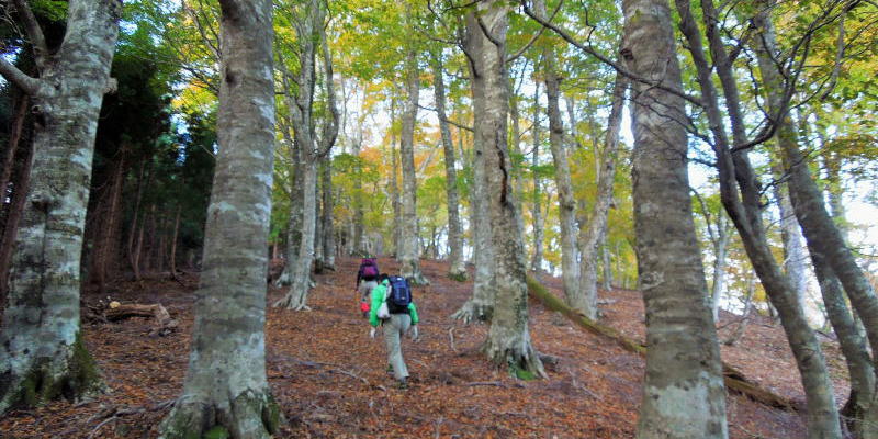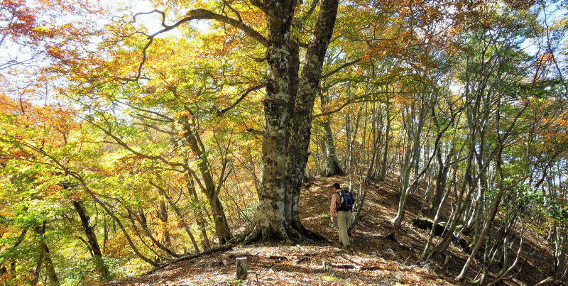 | 次第にブナの木が増えていき、転換点の1067mピークを過ぎると、巨木の森になっていく。 | |