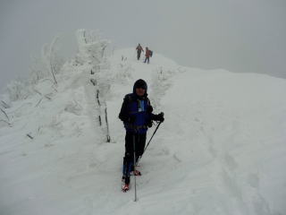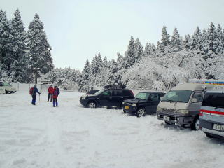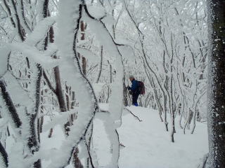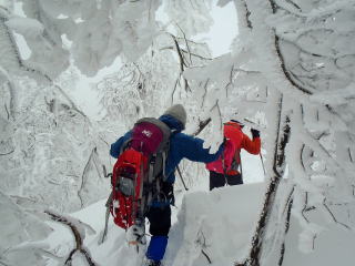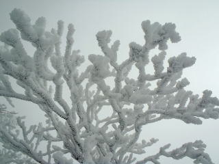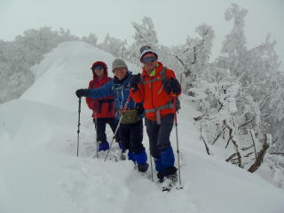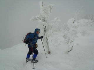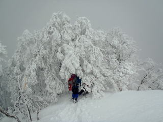 | 標高約940mの七合目あたりから見事な樹氷林になる。 | |