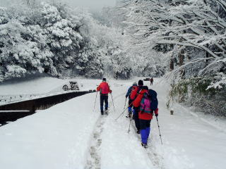 | 9時:登山口に到着し、植樹林のジグザグ道を登っていく。 | |