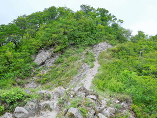 | 写真では分からないが、ガレ場、ザレ場の急坂がつづき、登りではかなりハードだろう。 | |||