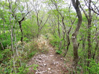 | いい雰囲気の笹原を下って子三瓶山へ向かう。 | |||