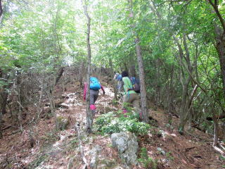 | 譲葉山を過ぎると、踏み跡が不明瞭になり、倒木で阻まれたりで、GPSに入れてきたルートを辿りながら 進んでいったが、GPSなしでは危険なルートだと思った。 |