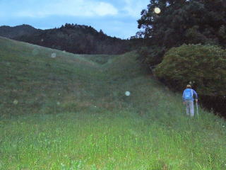 | 細い尾根を歩いて行くと、古墳跡が現れ、つづいてNHKの電波塔も通過。 | |